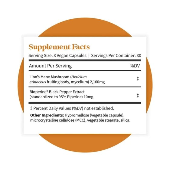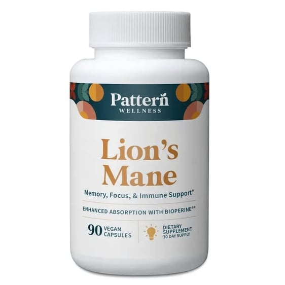 Lion’s Mane is nature’s superfood that helps your brain cells think, grow, and repair. Pattern Wellness’ vegan-friendly Lion’s Mane offers a potent, bioactive 2,100 mg daily dose, crafted to help replenish and fuel your mind for maximum cognitive function, memory support, and mental clarity.* Natural formula with Lion’s Mane Mushrooms BioPerine® Black Pepper extract to help absorption* Supports a healthy, sharp brain* Promotes learning and memory* Helps reduce brain fog*